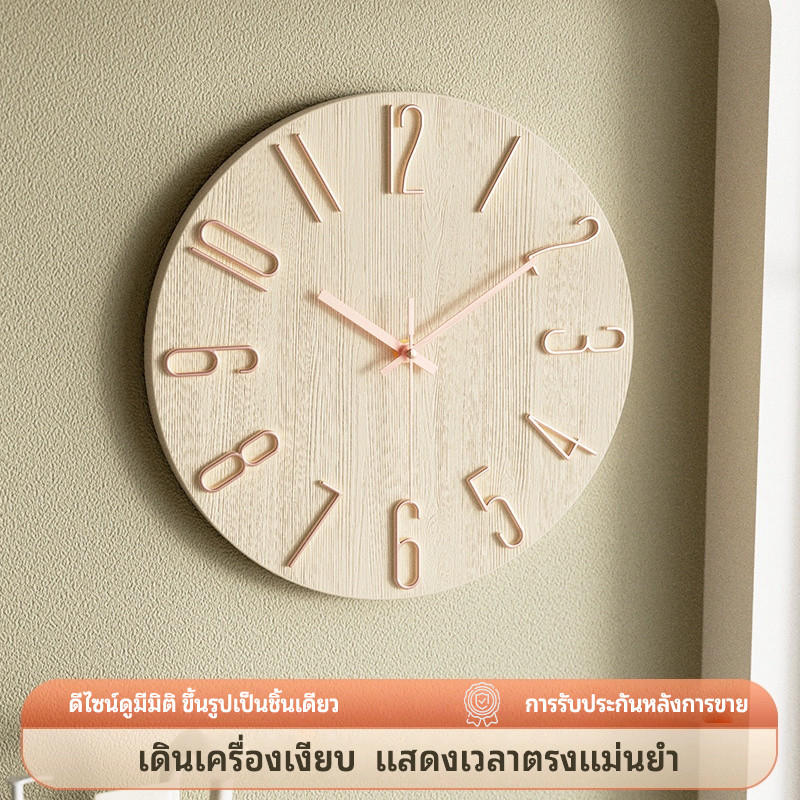 นาฬิกาแขวนผนังทรงกลมลายไม้ ขนาด 12 นิ้ว ดีไซน์ไร้กรอบ มีหลายสี สไตล์เรียบง่ายทันสมัย เดินเงียบ เหมาะสำหรับแขวนผนัง