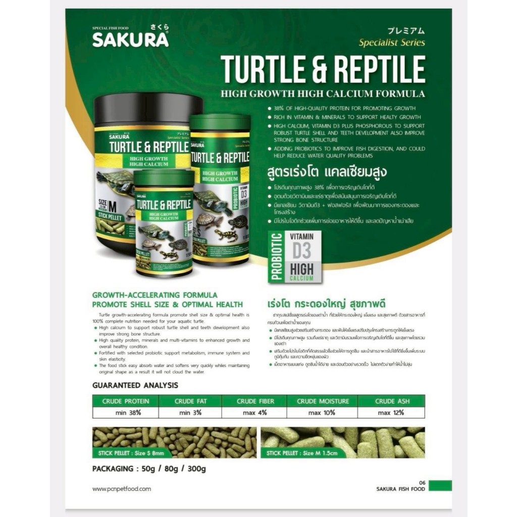Sakura Special Turtle & Reptile อาหารเต่าสูตรเร่งโต เพิ่มกระดองใหญ่ สุขภาพดี