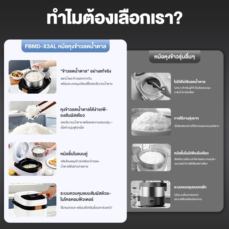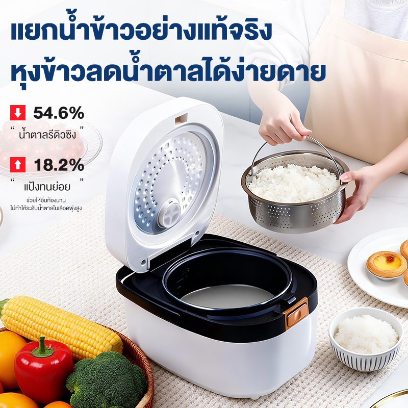 KAWU หม้อหุงข้าวลดน้ำตาล 3 ลิตร เหล็กกล้าไร้สนิม 8 ฟังก์ชั่น 304 ไม่ติดก้นหม้อ หม้อหุงข้าวอัจฉริยะ