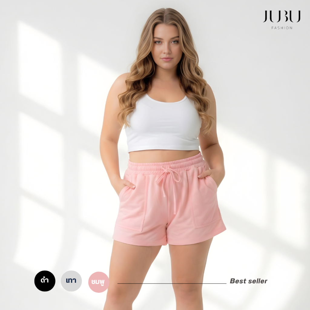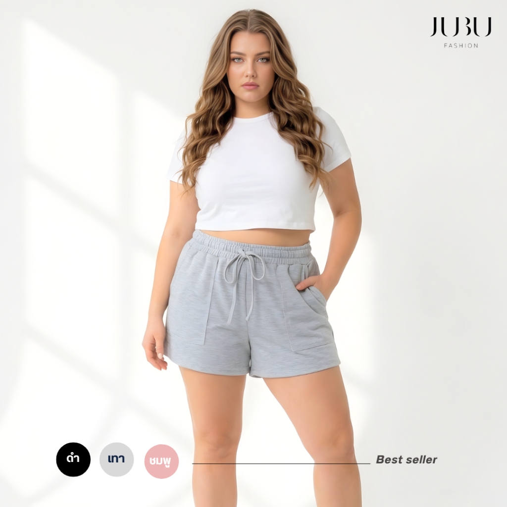 Ally Short กางเกงขาสั้นสาวอวบ กางเกงวอร์มเอวยางยืด ผ้าคอตตอนนุ่มใส่สบาย ไซส์ L/XL เอว 26-42 นิ้ว#611