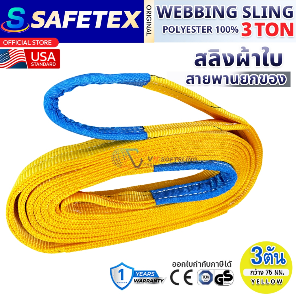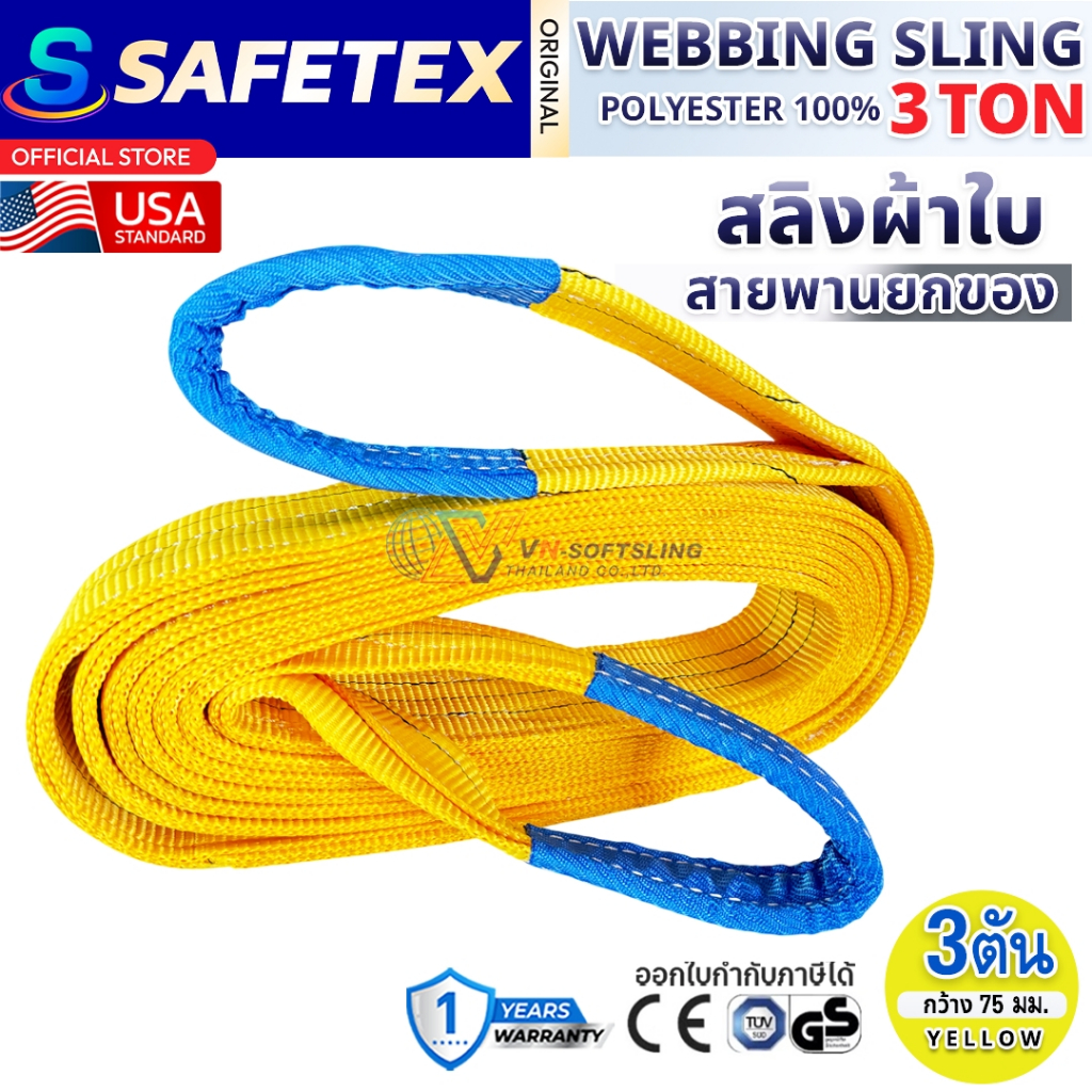 สายพานยกของ 3 ตัน SAFETEX USA แท้ สลิงผ้าใบ สลิงอ่อน สลิงแบน สลิงโพลีเอสเตอร์ 100%