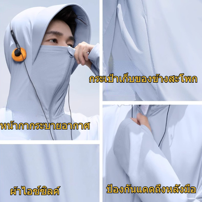 GENIO LAMODE เสื้อกันยูวีเย็นสบาย UPF200+ หมวกใหญ่ ป้องกันแดดเต็มตัว ผ้าลื่นเย็น 6สี S-5XL