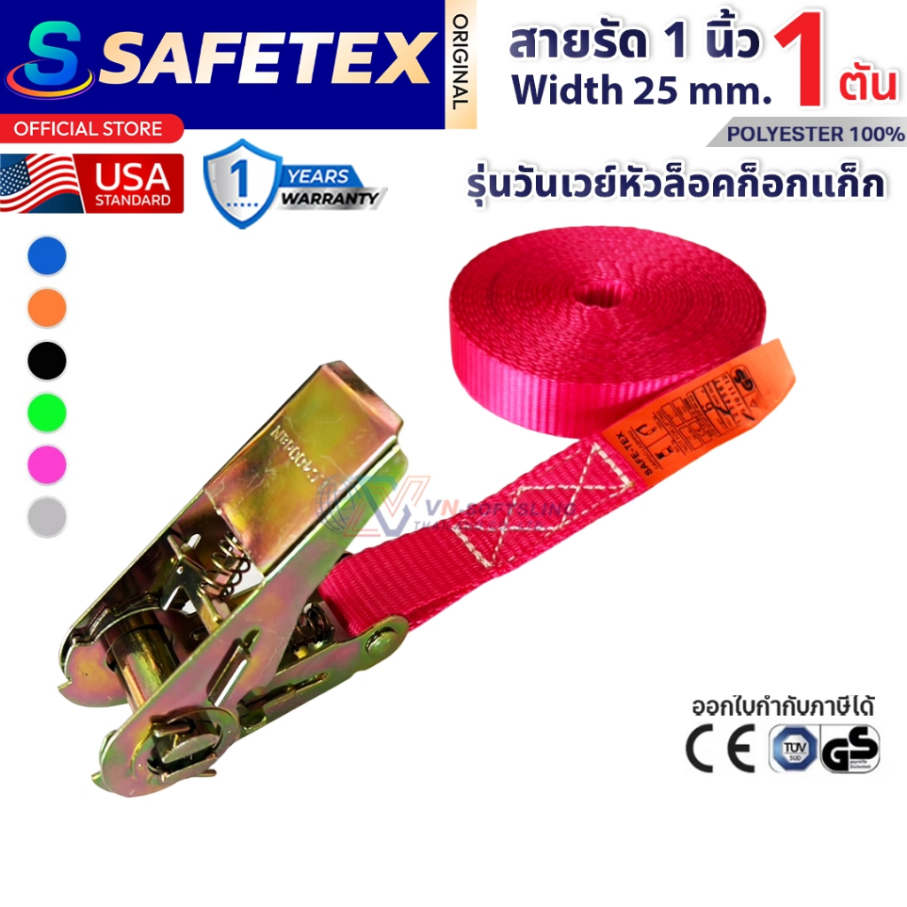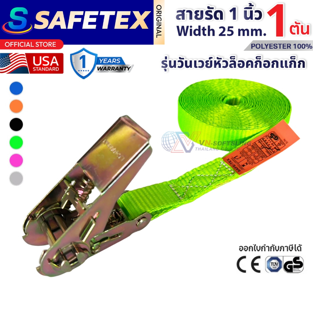สายรัดวันเวย์ 1 ตัน (หัวก๊อกแก๊ก) SAFETEX USA สายรัดของ สายรัดมอไซด์ สายรัดไรเดอร์ สายรัดอเนกประสงค์