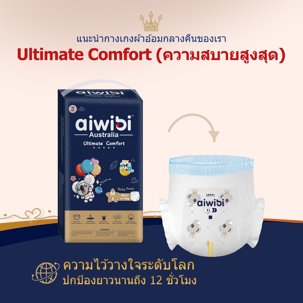 [ตัวอย่าง] Aiwibi ผ้าอ้อมเด็กสำเร็จรูป รุ่น Ultimate Comfort แบบกางเกง M-XXL (1 แพ็ค)