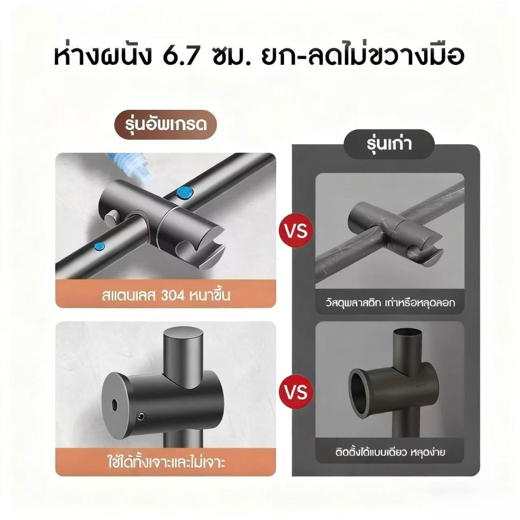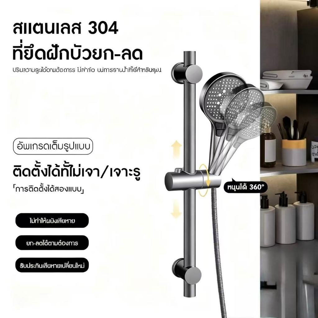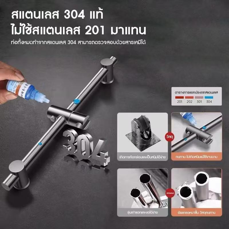 ราวฝักบัว ราวสแตนเลส304แท้ ไม่ลอกไม่ดำไม่เป็นสนิม ปรับระดับ สูง / ต่ำได้ ที่แขวนฝักบัวหมุนได้ 360 องศา66cmราวแขวนฝักบัว