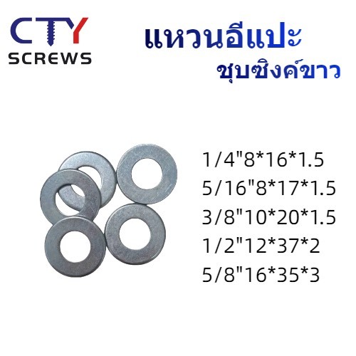 แหวนรอง น็อตสกรู แหวนอีแปะ ชุบซิงค์ขาว (Washer) | แข็งแรง ทนสนิม งานคุณภาพ แพค 10ตัว