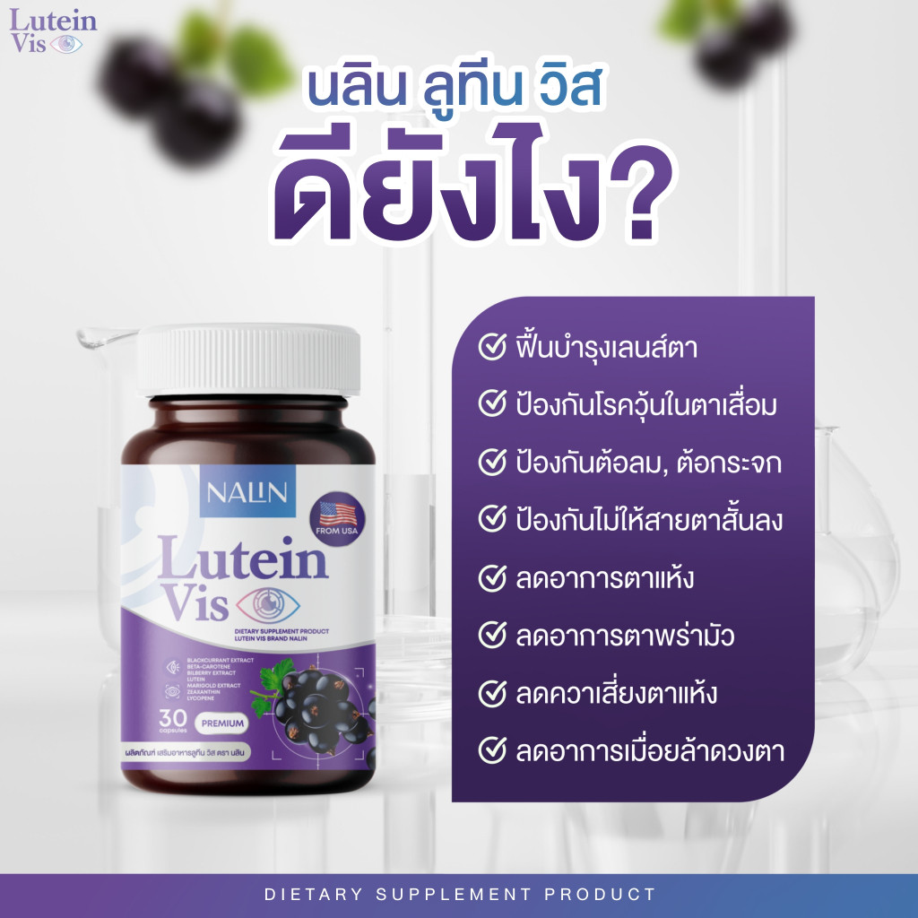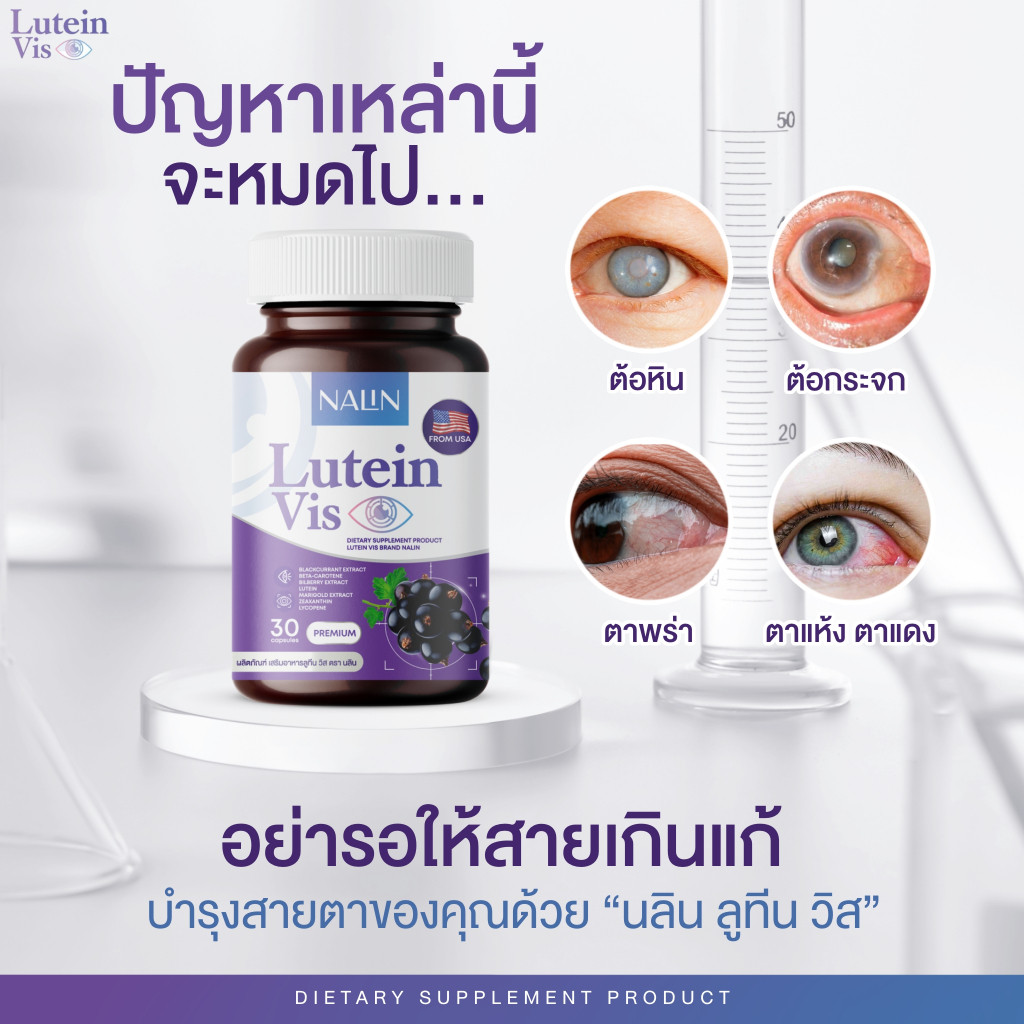 NALIN Lutein Vis นลิน ลูทีน วิส บำรุงสายตา จ้องจอนาน ตาเบลอ คันตา ตาแดง ปวดตา 1กระปุก 30 แคปซูล