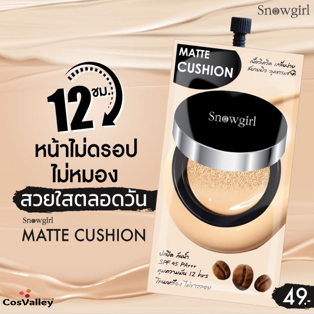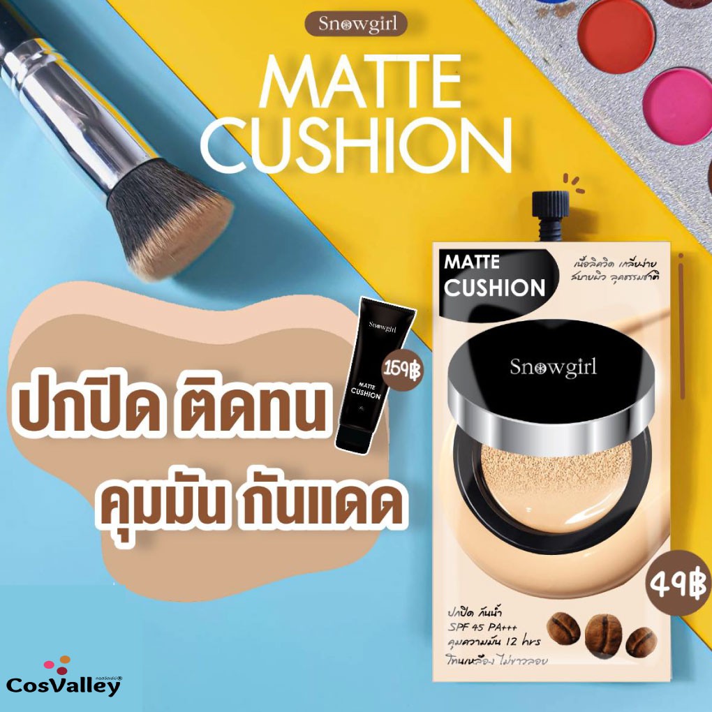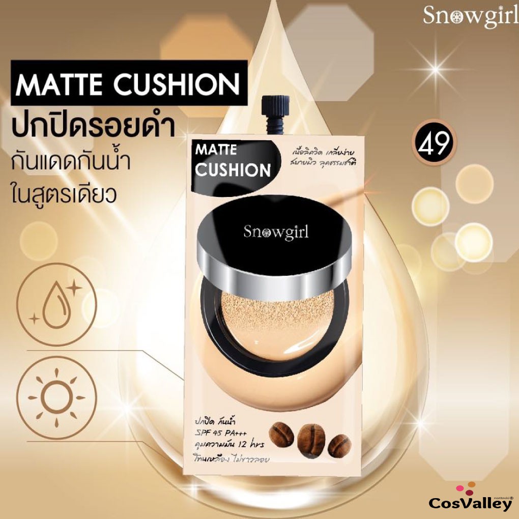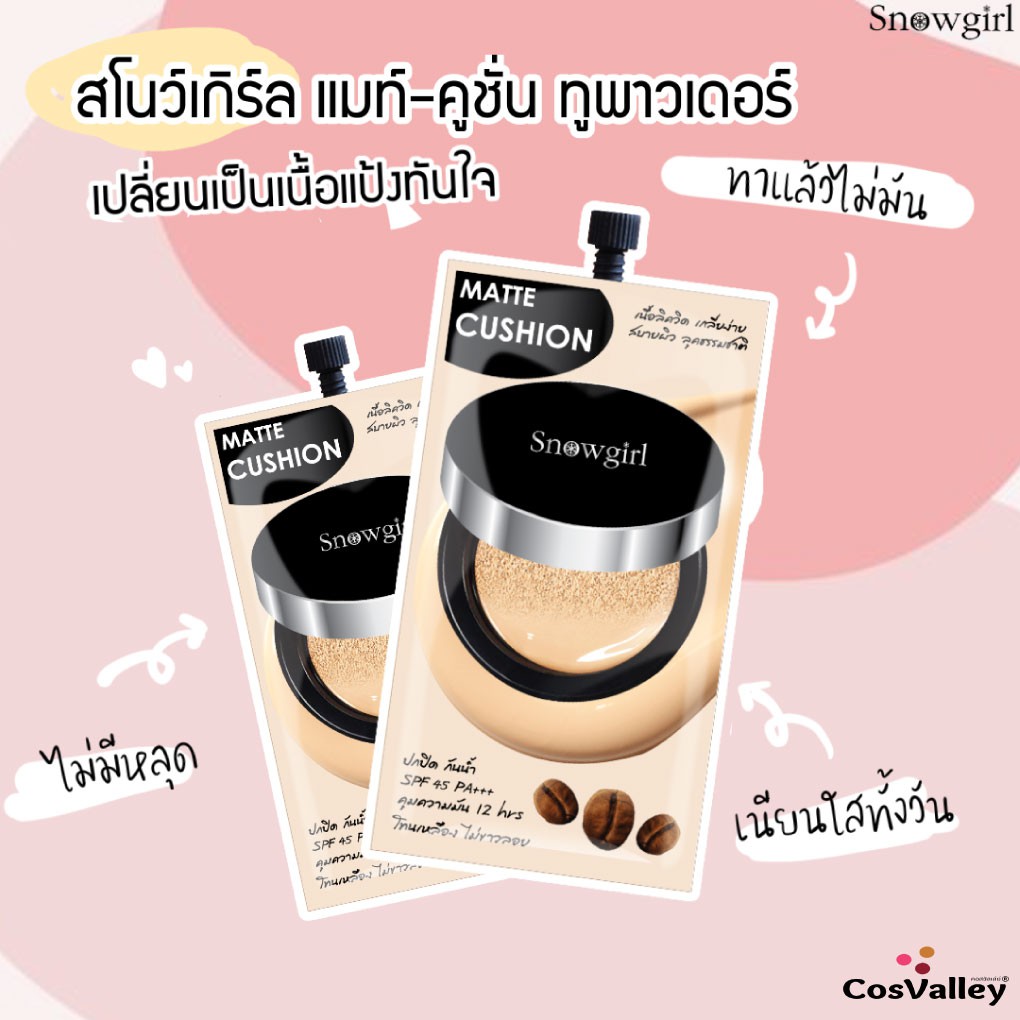 [กล่อง x 6ซอง] แมทท์คุชชั่น รองพื้น กันน้ำ กันเหงื่อ คุมมัน Snowgirl Matte-Cushion to powder 9g.
