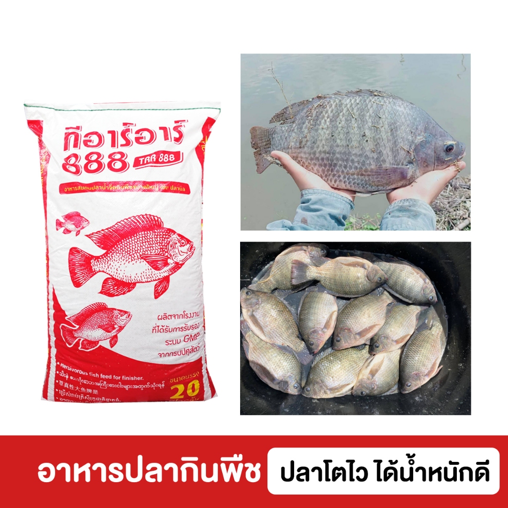 TRR 888 อาหารปลากินพืช ทีอาร์อาร์ เม็ดใหญ่ โปรตีน 15.5% อาหารปลานิล ปลาชะโด ปลาบึก ปลาสวาย ขนาด 20 kg.