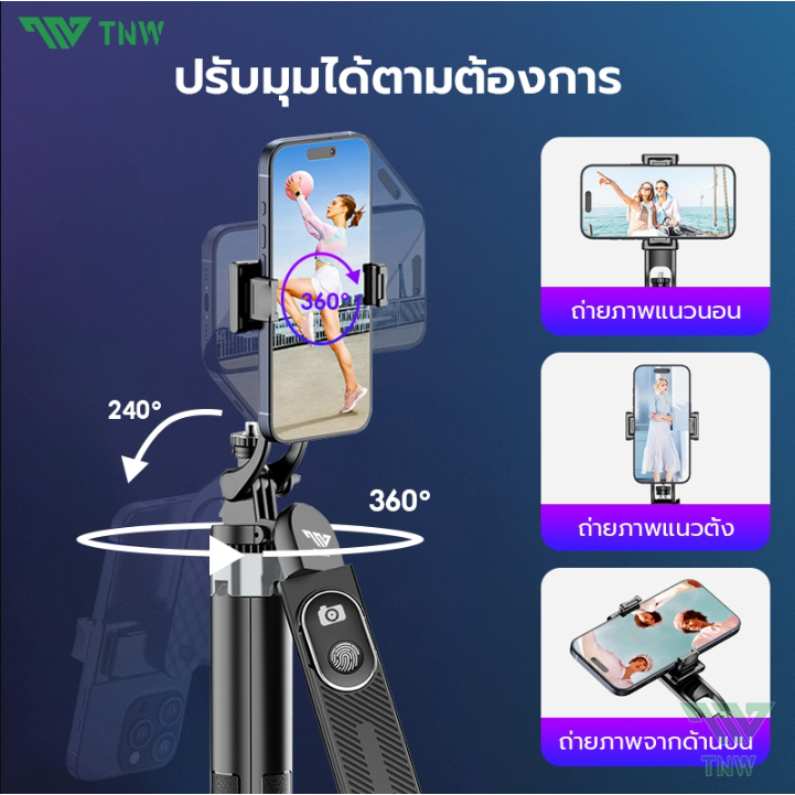 TNW S25 ไม้เซลฟี่ ไม้เซลฟี่ไร้สาย1.8m ขาตั้งกล้อง พร้อมรีโมทบลูทูธ ไม้เซลฟี่กันสั่นสะเทือน หมุนได้ 360° ไฟLED ถ่ายรูปสวย