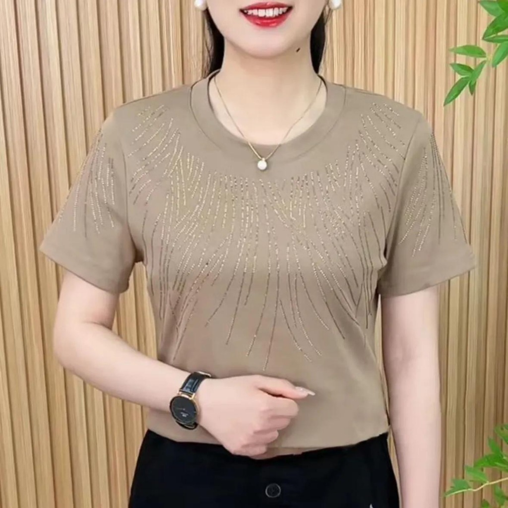 แม่ ราวด์เน็กใหม่ฤดูร้อน เสื้อแขนสั้น เสื้อคลุมผิวสุดชิค โซลิด สลิมฟิต เสื้อยืดลำลอง