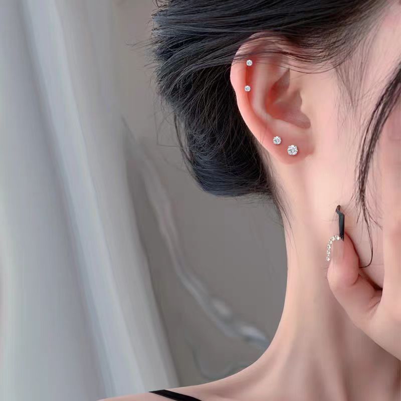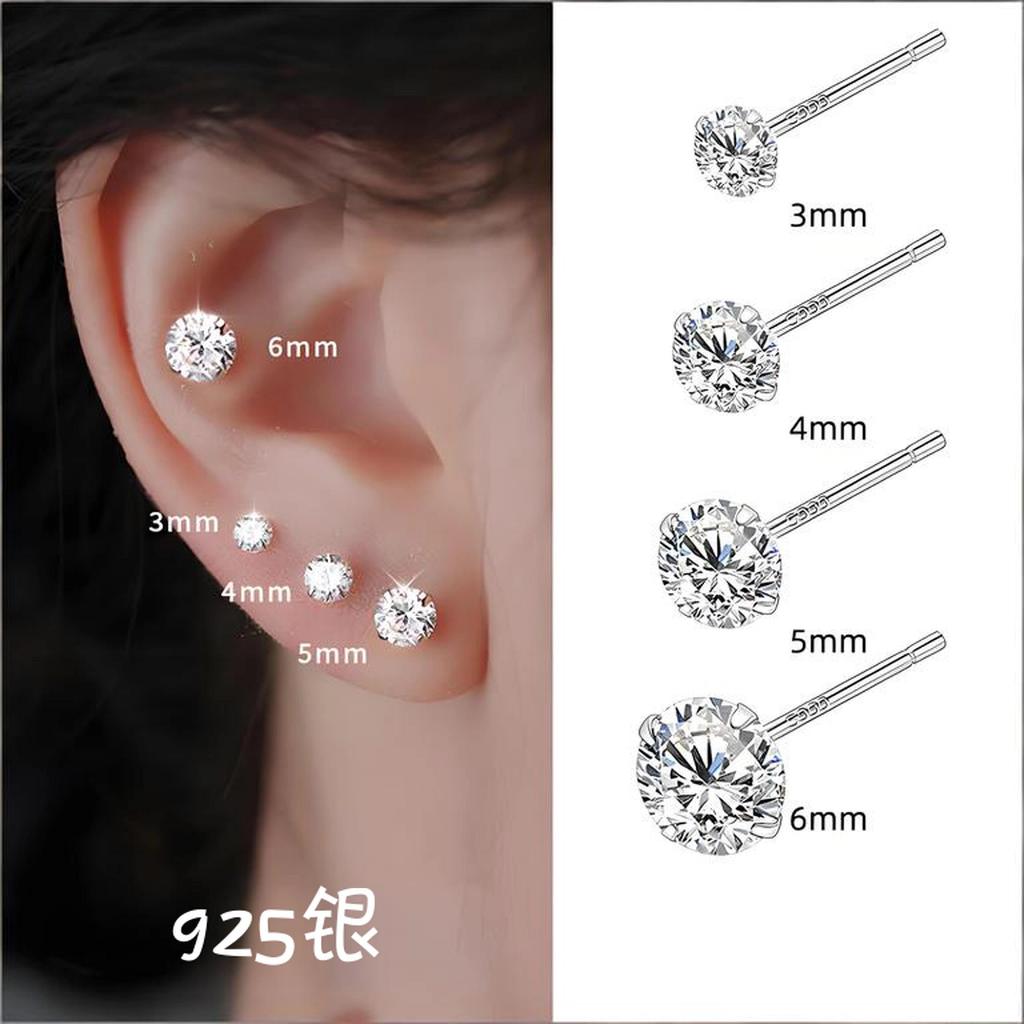 ต่างหูเพชร 92.5% เงินเพชรสวยสวมใส่ยาวก้านไม่แพ้