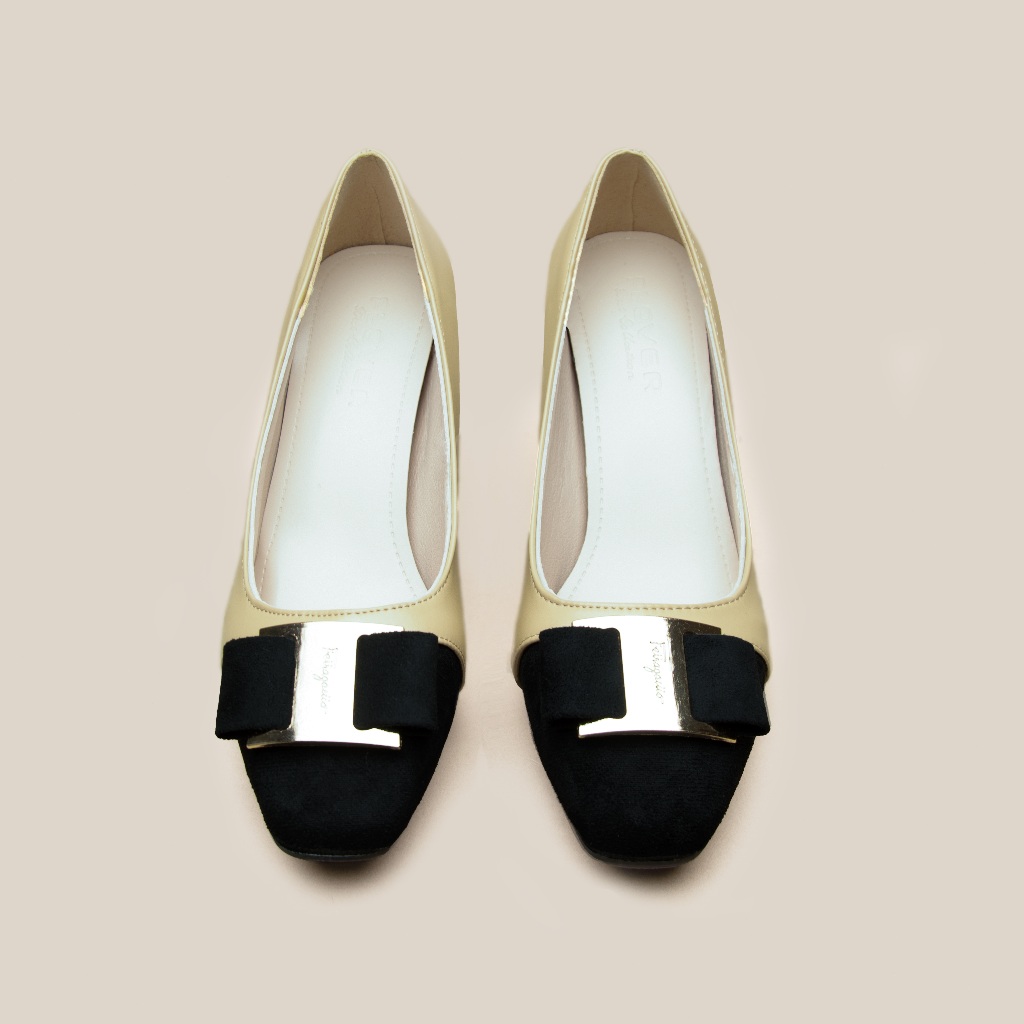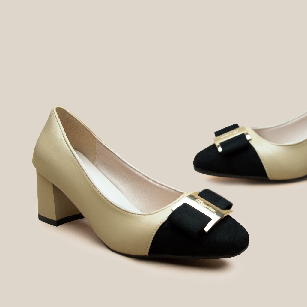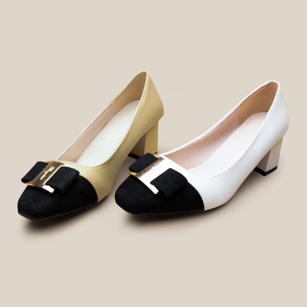 VONICA รองเท้าทำงานผู้หญิง ส้นเตารีด หัวเหลี่ยม สีขี้เหลือง ส้นสูง 2 นิ้ว รองเท้าสำนักงาน ใส่แมทช์ง่าย