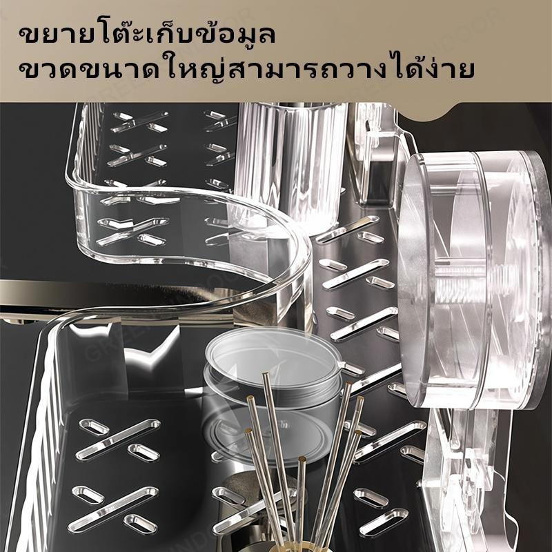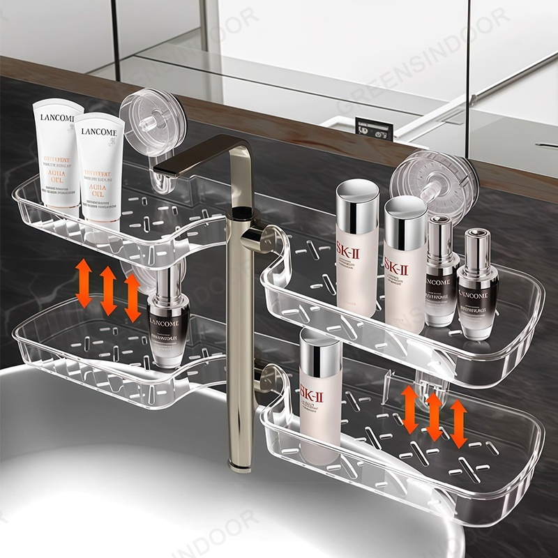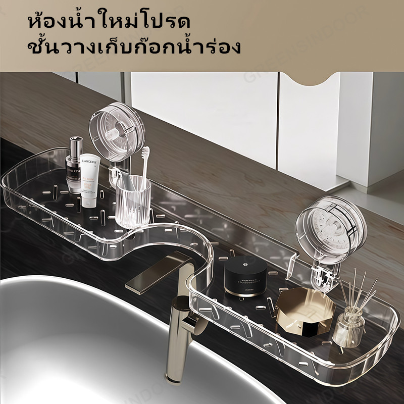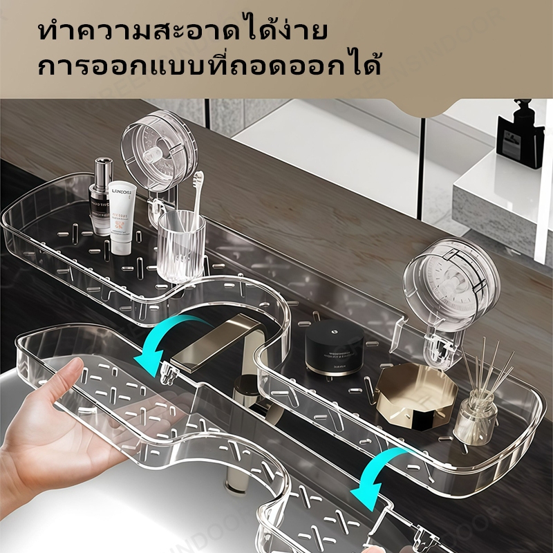 ชั้นวางของพลาสติก PET แบบดูดเกลือกสำหรับอ่างล้างหน้า ไม่ต้องเจาะ ติดตั้งบนก๊อกน้ำและเก็บของในห้องน้ำ