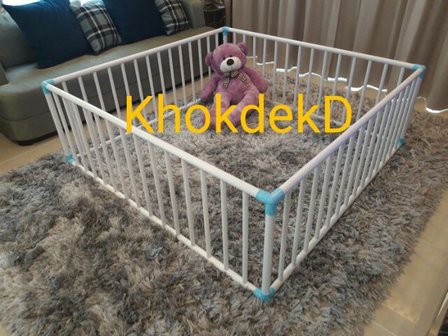 15S83 AFคอกกั้นเด็กไร้รอยต่อ 5x5ฟุต 150x150 cm. สูง 60 cm. มุมสามทางฉากฟ้าอย่างหนา8หุนไม่ลดสเปค ไม่ใช้ข้องอท่อบางไม่ทำ