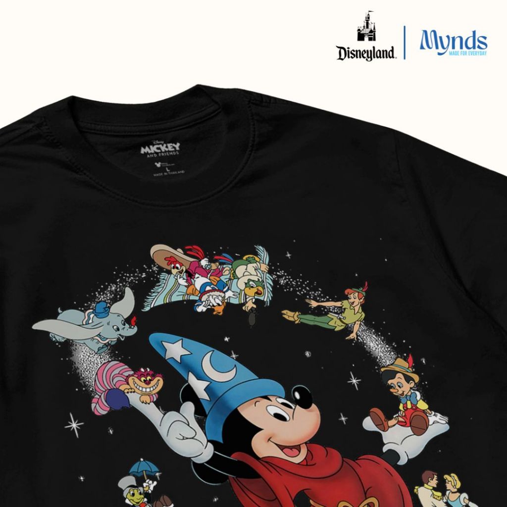 Mynds x Disney land เสื้อยืดสีดำ ลาย Mickey mouse Fantasia ลิขสิทธิ์แท้จาก Disney เนื้อผ้านุ่ม ใส่สบาย ไม่หด