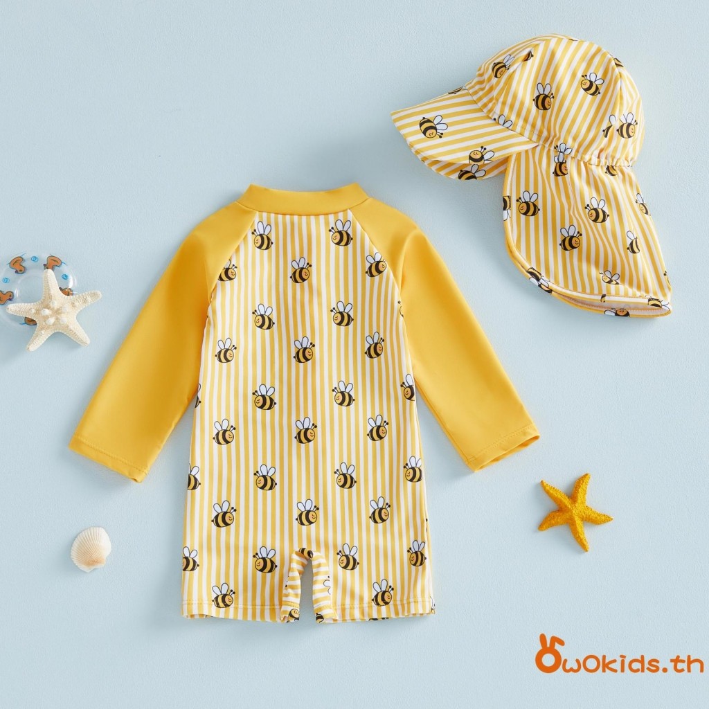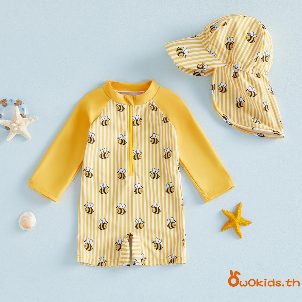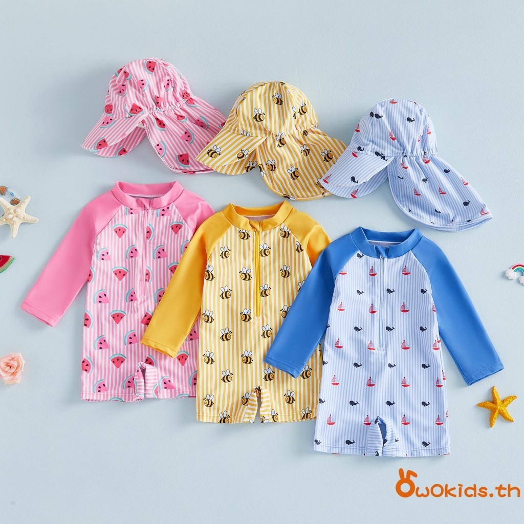 ชุดว่ายน้ำเด็ก Rash Guard แขนยาว พิมพ์ลาย.Zip up แบบสองชิ้น มีลวดลาย Bee, แตงโม และ Sailboat
