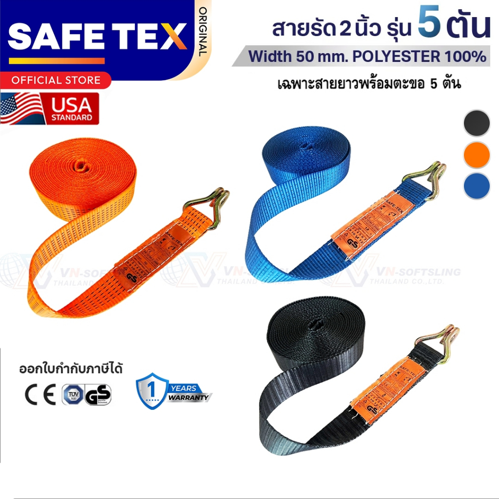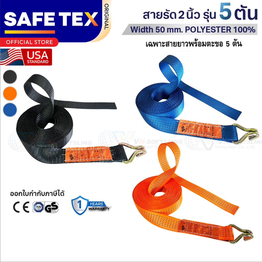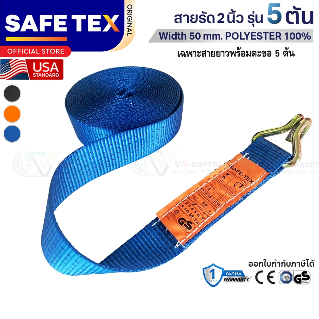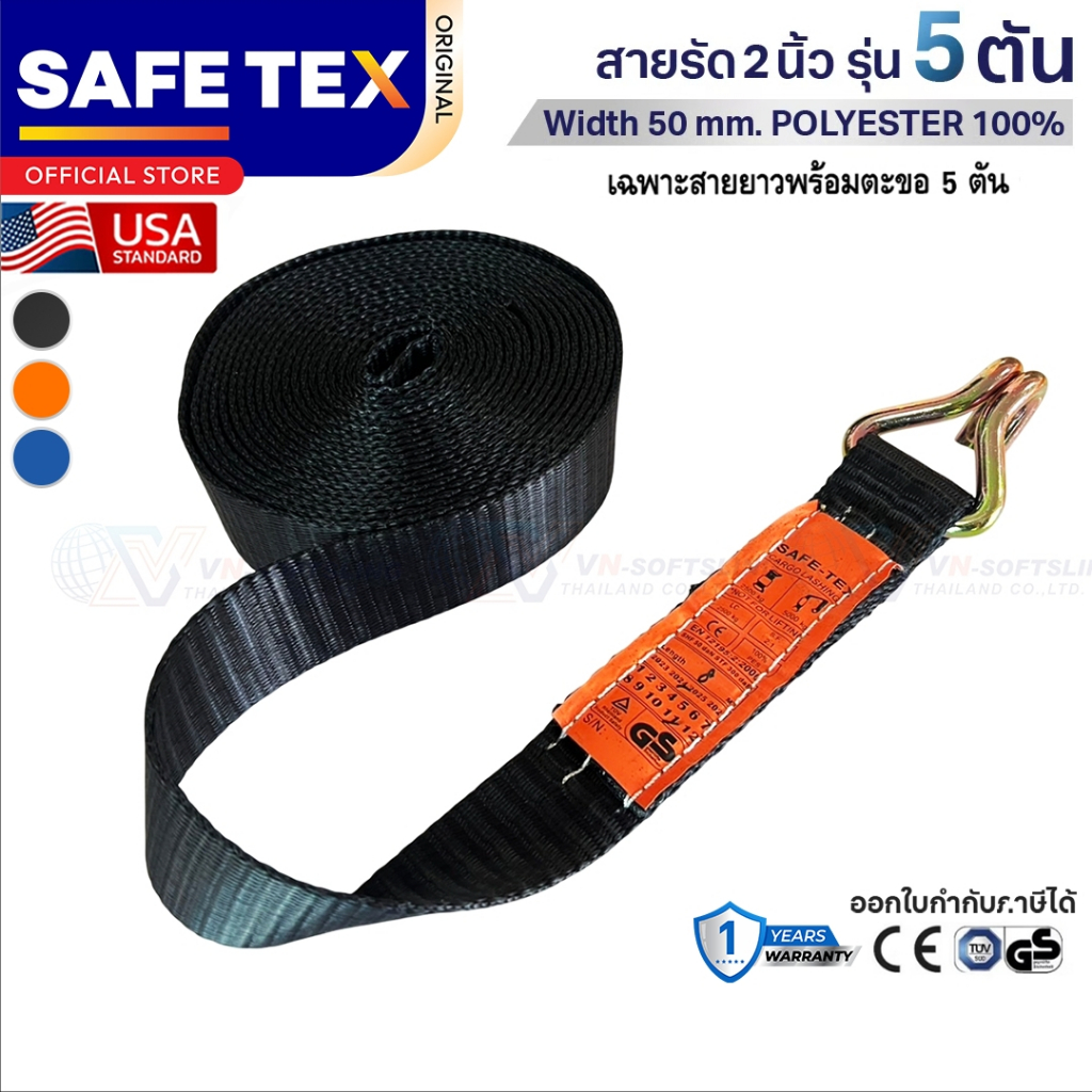 สายยาวพร้อมตะขอ 2 นิ้ว 5 ตัน (ไม่มีหัว) SAFETEX USA สายรัดของ สายรัดรถบรรทุก สายรัดโพลีเอสเตอร์100%