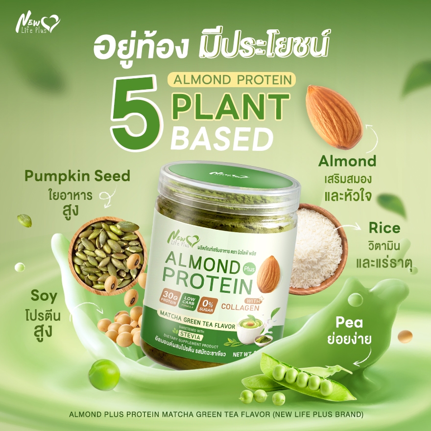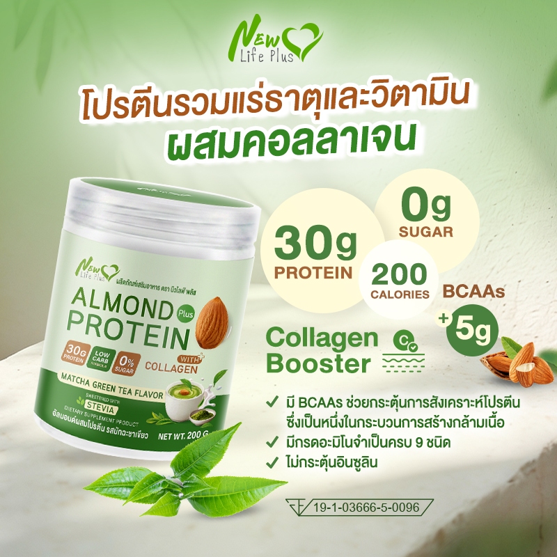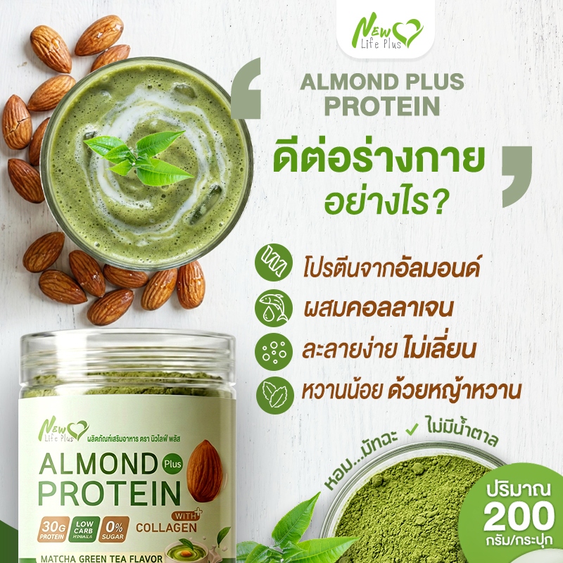 [New Size❗] (ซื้อคู่=400g.คละรสได้) New Life Plus Almond Protein Matcha โปรตีนอัลมอนด์ รสมัทฉะ โปรตีนสูง 30g BCAAs
