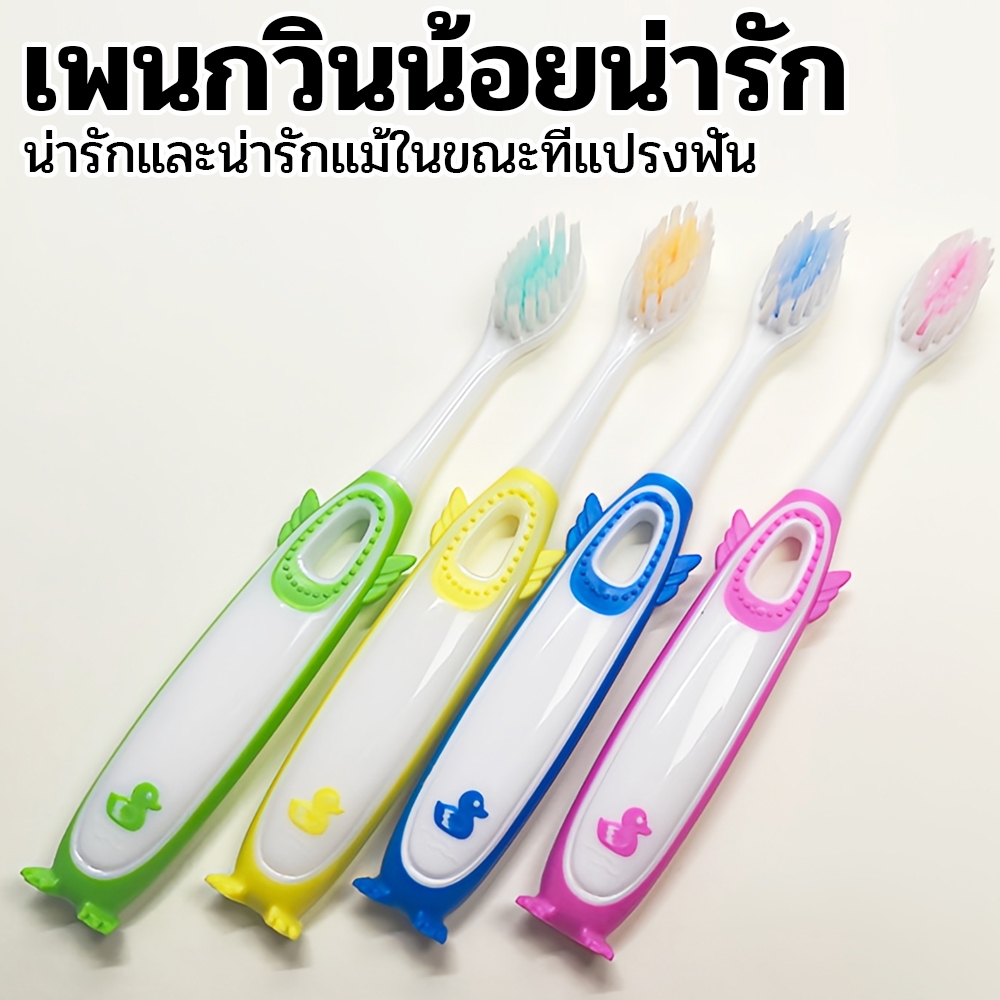 แปรงฟันเด็กขนนุ่ม ปลอกปากนุ่มนวล ลายเป็ดน่ารัก ชุด 10 แปรง