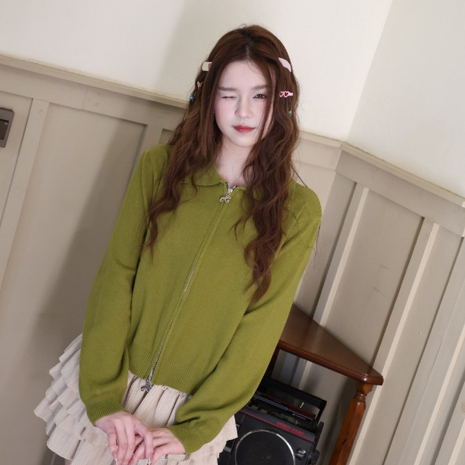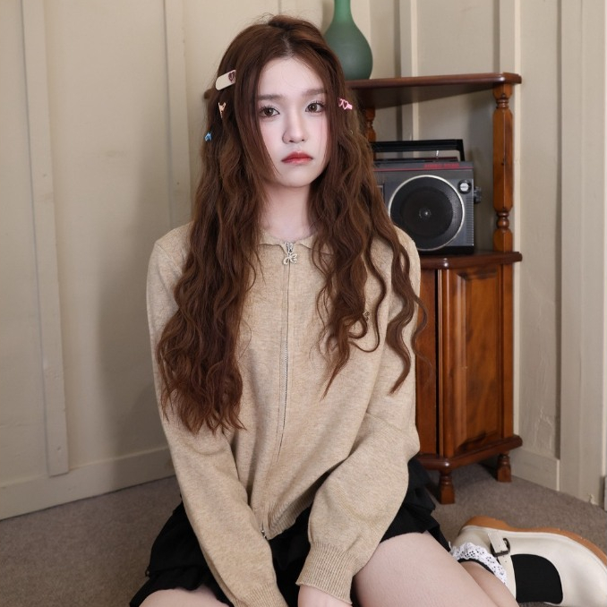 JARINYA (S-L) เสื้อไหมพรมคอปก 2 ซิป แต่งอะไหล่ JY