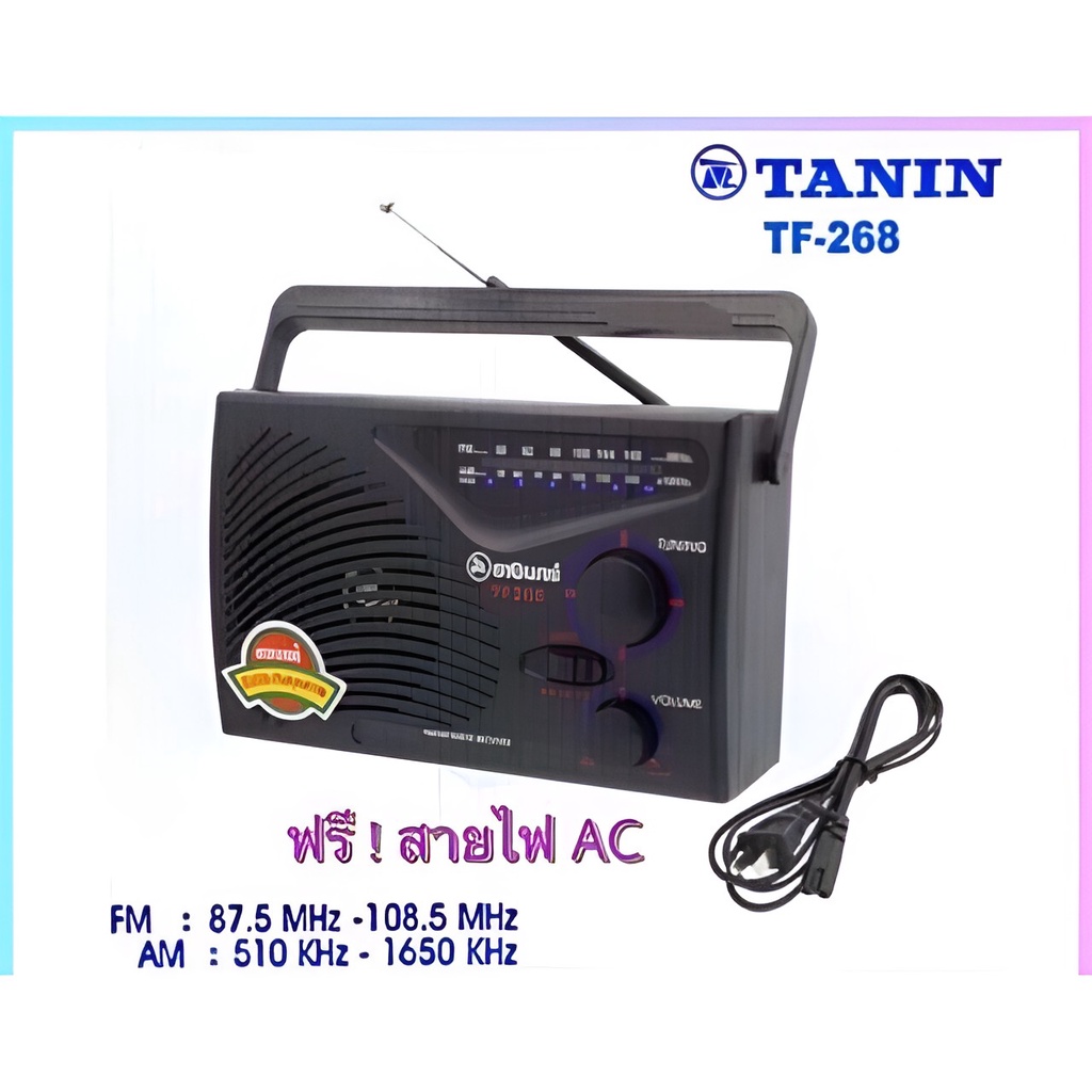วิทยุธานินทร์ TANIN fm/am รุ่นTF-268ใช้ไฟได้ใช้ถ่านได้ TF-299 TF-288 วิทยุทรานซิสเตอร์เคลื่นชัด มีถ่านวิทยุ มีสายไฟวิทยุ