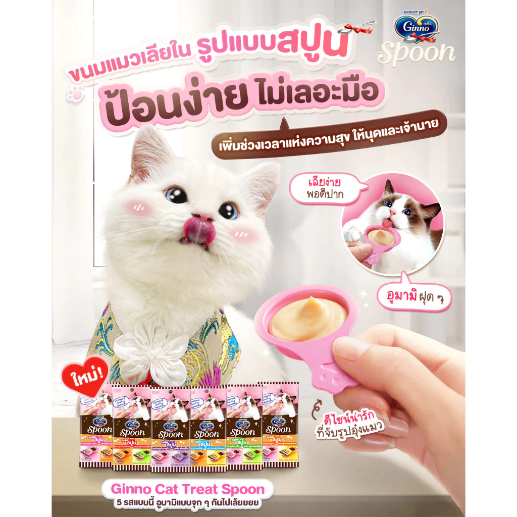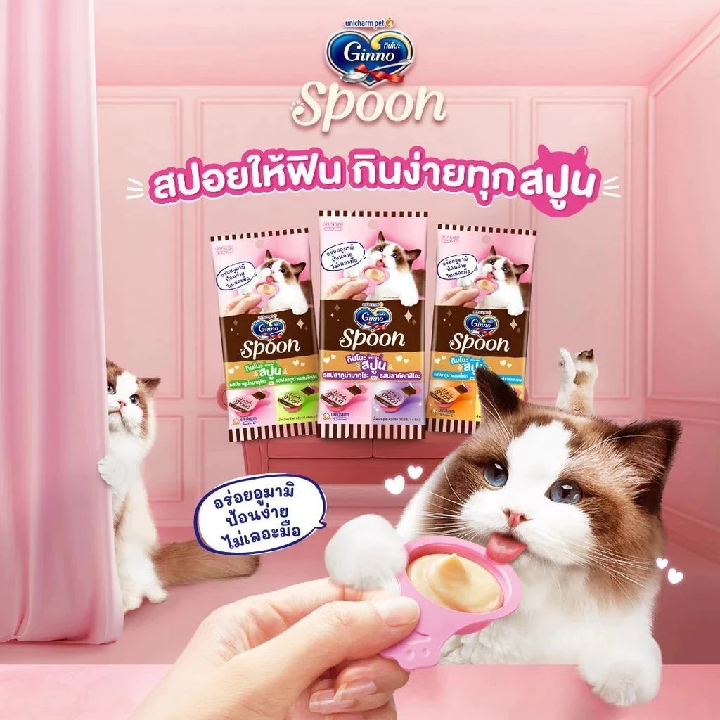 [ยกโหล 12 ซอง] Ginno Spoon กินโนะ แคท ทรีท สปูน ขนมแมวเลีย (10g.x 4 ถ้วย)