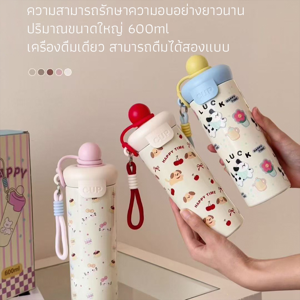 [ซื้อ 1 แถม 1]ถ้วยน้ำฉนวน ถ้วยน้ำเย็น 316สแตนเลส รูปแบบการ์ตูนน่ารัก การเก็บรักษาความร้อนเป็นเวลานาน