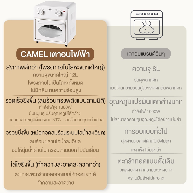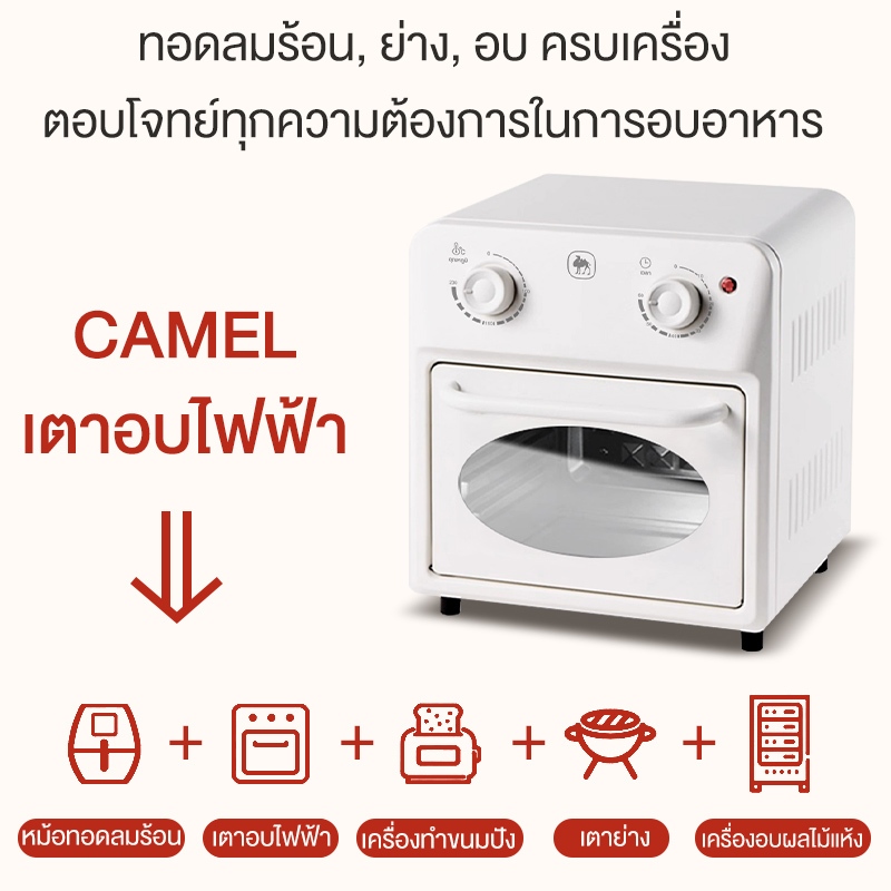 CAMEL เตาอบไฟฟ้าแบบตั้งโต๊ะ 12L ลมร้อน ขนาดเล็ก ชั้นวาง 3 ชั้น สำหรับอบ ปิ้ง ย่าง