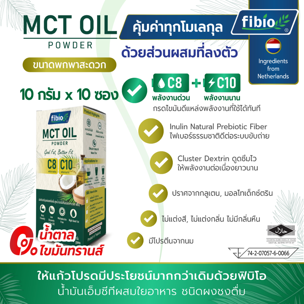 [Fibio] MCT Oil Powder C8 C10 ผสม Inulin Fiber ผงเอ็มซีทีออยล์จากมะพร้าวแท้ ขนาด 10 g x 10 ซอง พลังงานดี คีโตทานได้