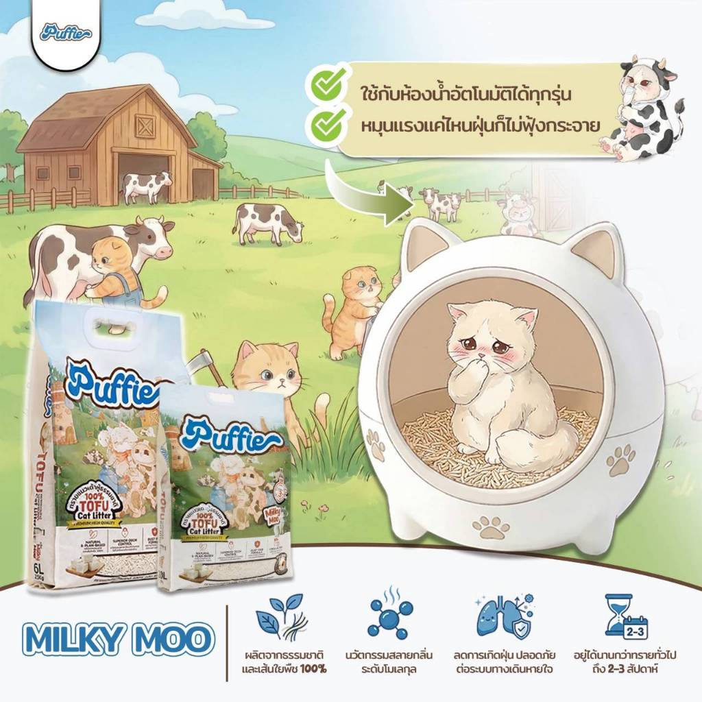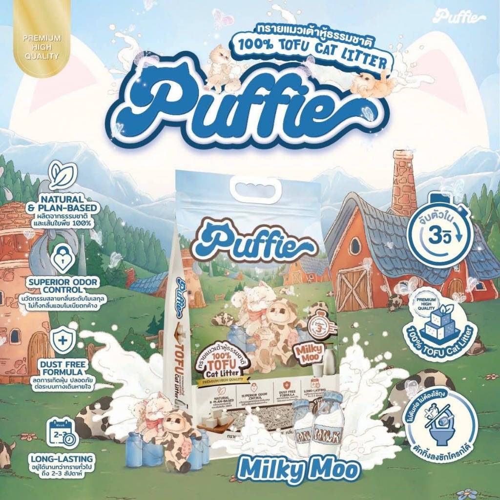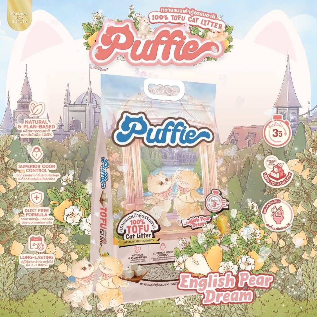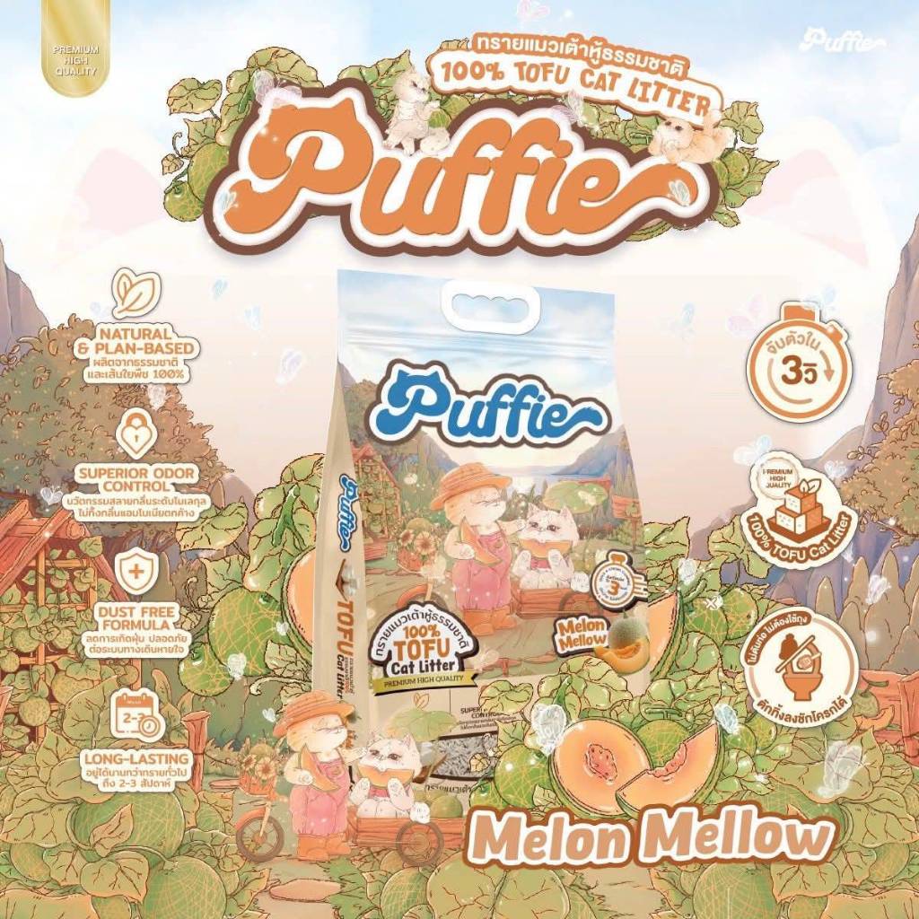 [20ลิตร] Puffie ทรายแมวเต้าหู้ เกรดพรีเมียม พัฟฟี่