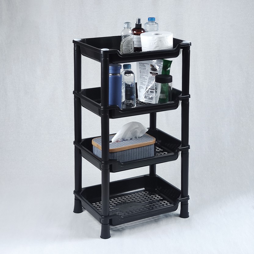 ชั้นวางของพลาสติก 4 ชั้น (No.316/4 ทรงเหลี่ยม สีดำ)