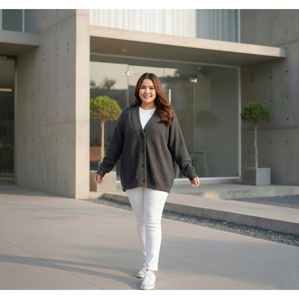 เสื้อคลุมไหมพรม คาร์ดิแกน เสื้อกันหนาว โอเว่อร์ไซซ์ สาวอวบใส่ได้