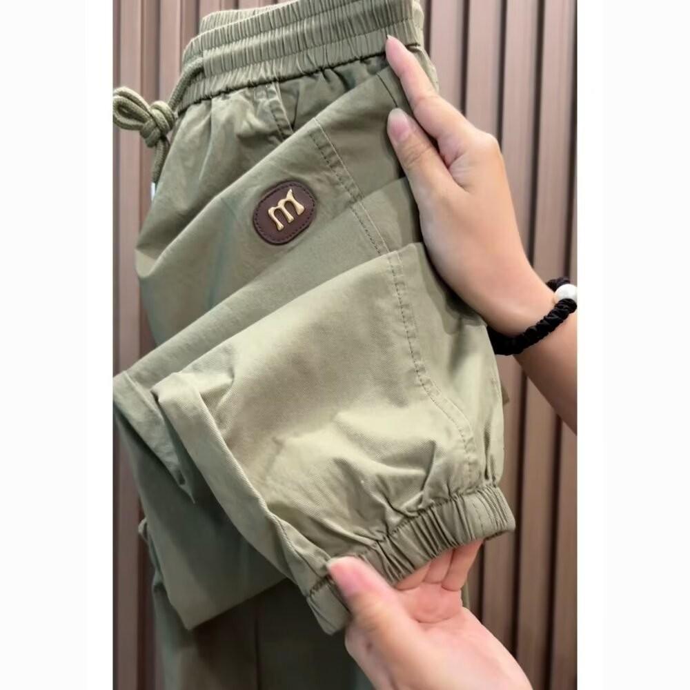 กางเกง Jogger ผู้ชาย ทำจากผ้าฝ้ายน้ำหนักเบา สวมใส่สบาย เหมาะสำหรับฤดูร้อนและสไตล์Streetwear มีให้เลือกทั้งสีดำและสีเทา