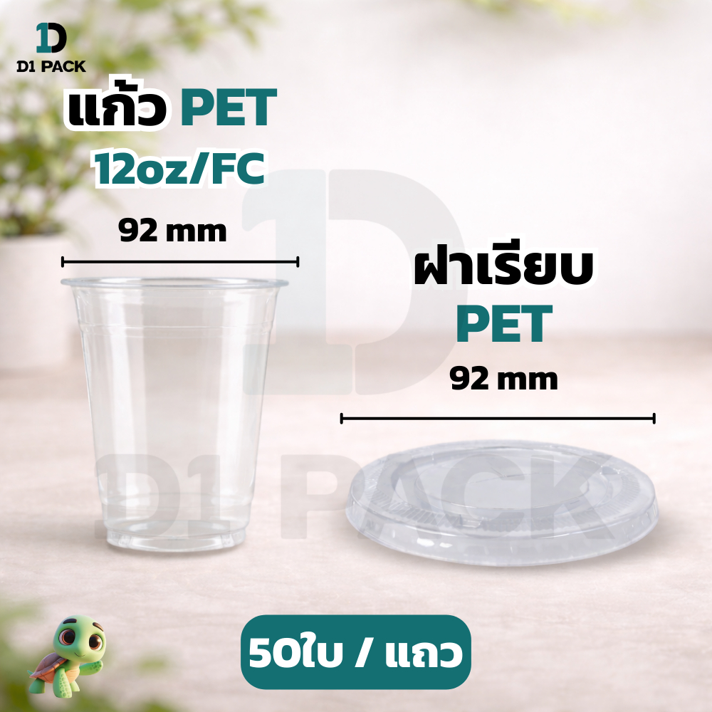 CPE-แก้ว PET 12 ออนซ์ ปากแก้ว 92 มิล *+พร้อมฝา หนาพิเศษ คาเฟ่ (50ใบ)