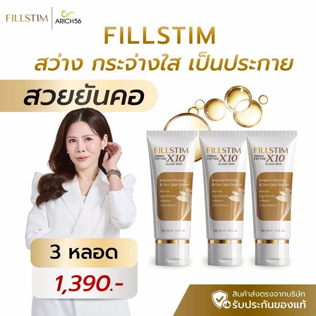 FILLSTIM ฟิลสติม อะมิโนแปปไทด์X10 ผิวหน้าสวย คอเรียบเนียน ผิวกระจ่างใส ลดจุดด่างดำ ชุ่มชื่น กลาสสกิน