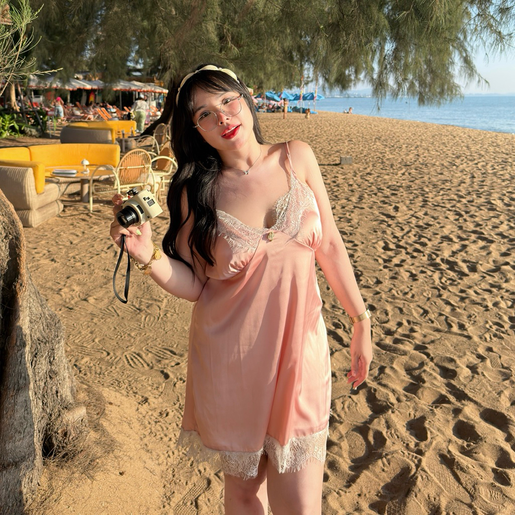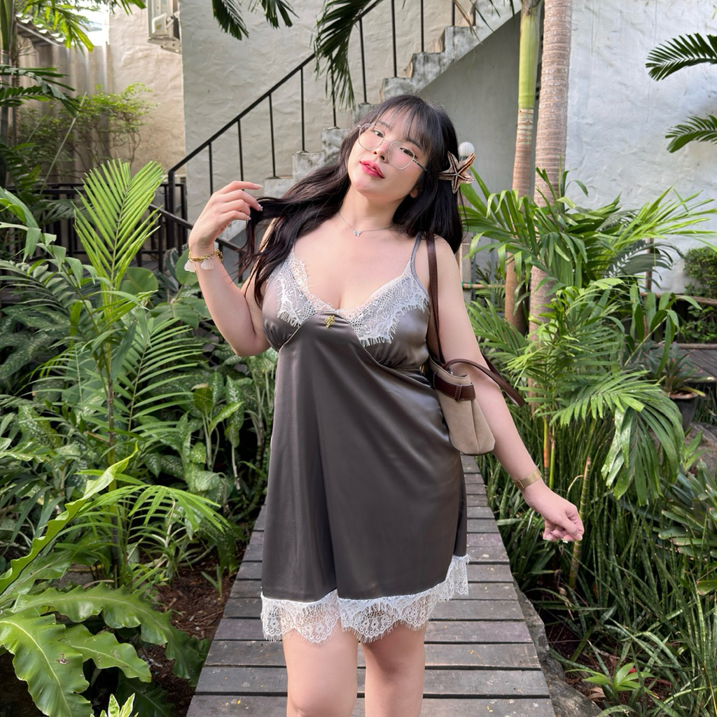 Sindir Satin Dress เดรสซาตินซินเดียร์✨💃🏻👠💍 เดรสซาตินสาวอวบอ้วน เดรสสั้นแต่งลูกไม้ | Geebeety