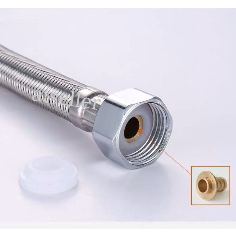 สายน้ำดี ยาง EPDM ถักสแตนเลส sus304 4หุน1/2สองข้าง สายเข้าเครื่องทำน้ำอุ่น ต่อก๊อกห้องน้ำ 1เส้น