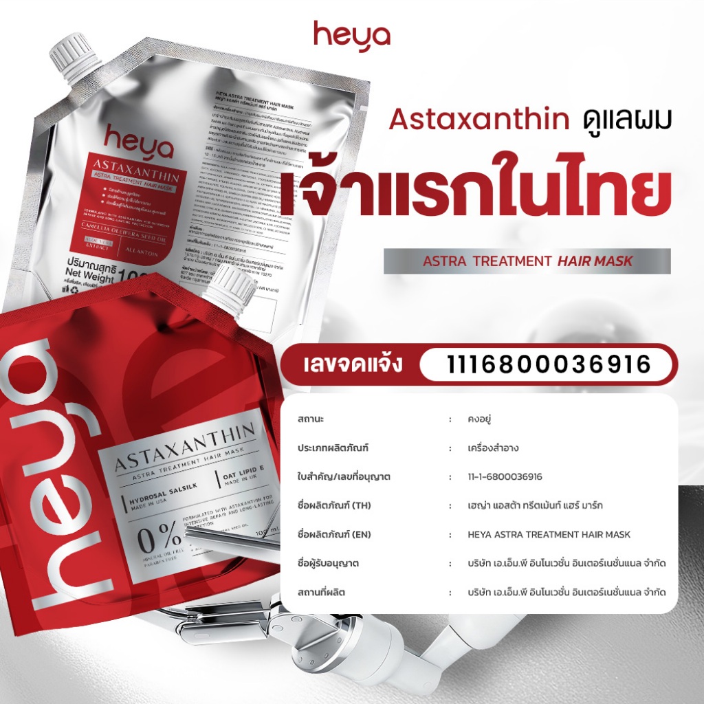 Heya Asta Treatment Hair Mask [3 ซอง] ทรีตเมนต์ Astaxanthin เจ้าแรกในไทย แก้ได้ทุกปัญหาผม [แถมหวี]