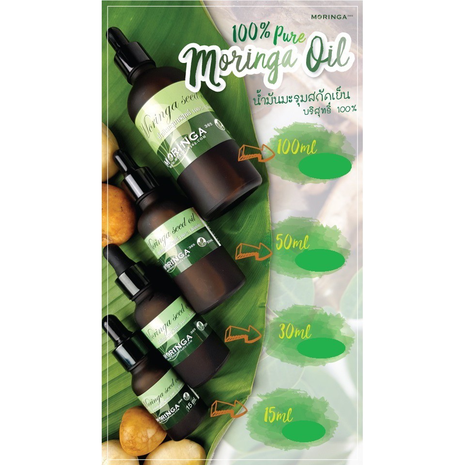 Moringa365 น้ำมันมะรุมบริสุทธิ 100% บำรุงผิวหน้า ผิวกาย *สูตรสกัดเย็น* Moringa seed oil