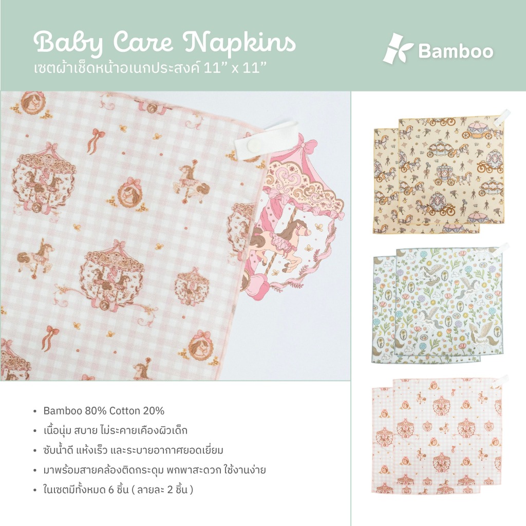 BABY & CO ผ้าเช็ดหน้า เนื้อผ้าใยไผ่ ขนาด 11x11 นิ้ว Horse Collection 6pcs.