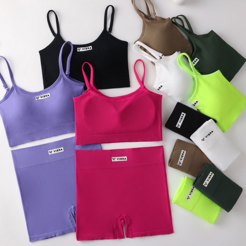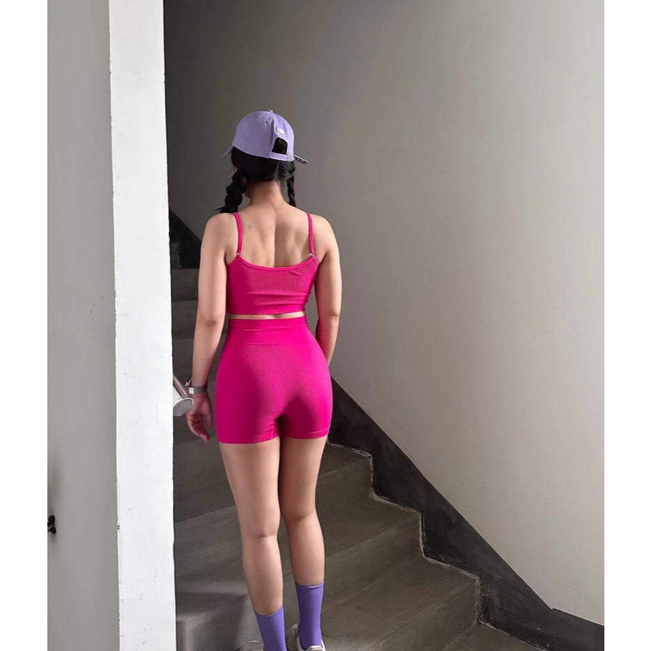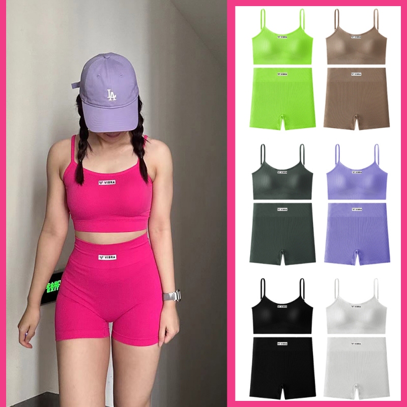 VIBRA ชุดเสื้อสายเดี่ยวกับกางเกงขาสั้นสำหรับผู้หญิง ใส่ฟิตพร้อมออกกำลังกาย ทั้งในฟิตเนส โยคะ ที่บ้าน และกลางแจ้ง