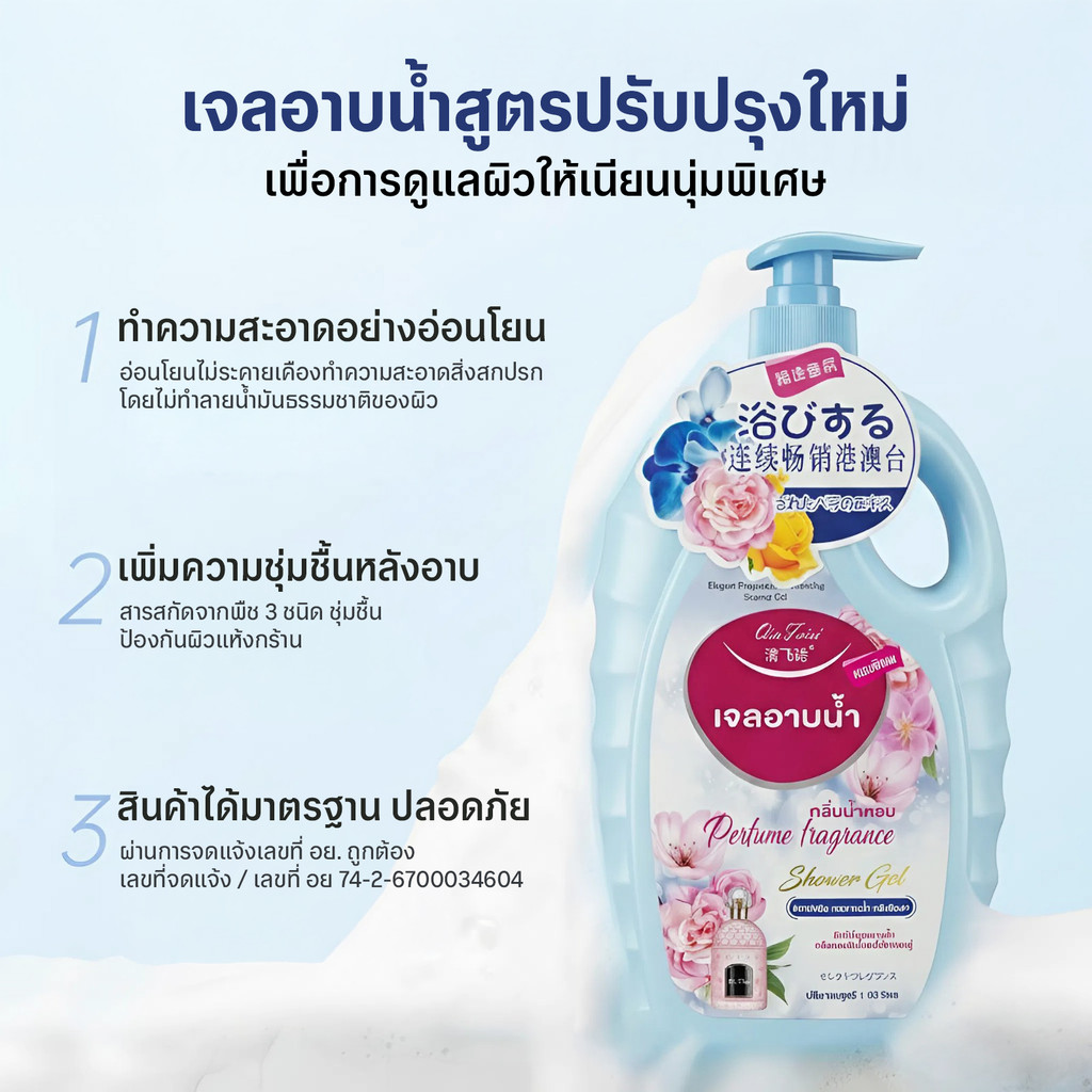 Qin Feisi เจลอาบน้ำกลิ่นน้ำหอม หอมติดผิว ผิวนุ่มชุ่มชื้น 1000ml