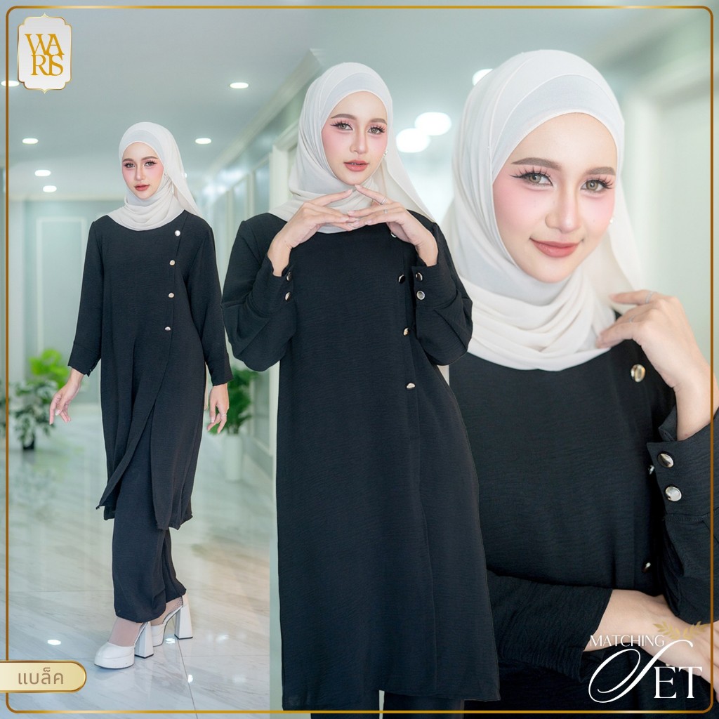 ชุดเซ็ตเสื้อกางเกง เนื้อผ้าสลาฟ เสื้อตัวยาวคลุมสะโพก สวมใส่แล้วดูสุภาพเรียบร้อย IN51วาริสมุสลิม