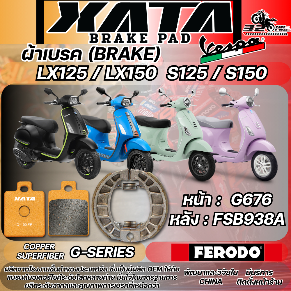 ผ้าเบรค FERODO x XATA สำหรับ VESPA S125 , S150 / LX125 , LX150 ของแท้ส่งไว!! 320sp.online