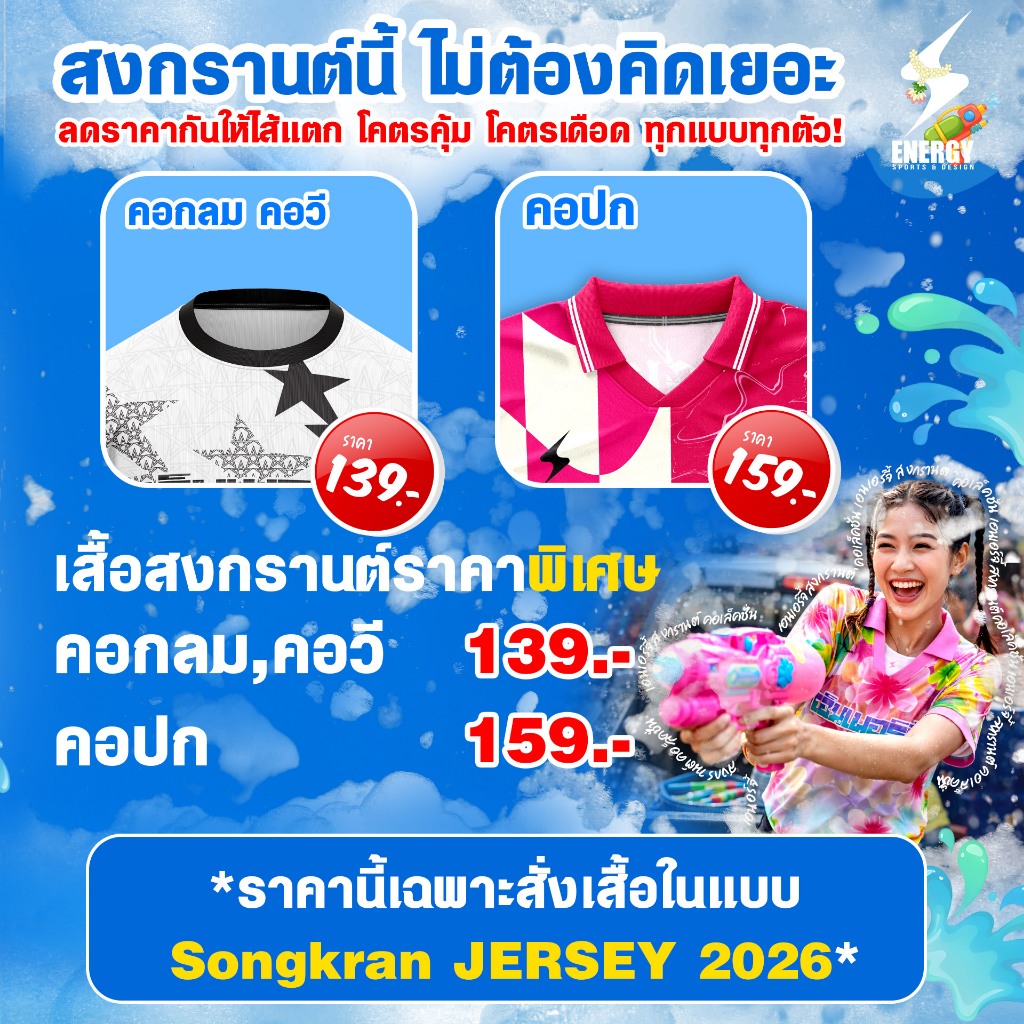 เสื้อสงกรานต์ Set01 เสื้อใส่เล่นสงกรานต์ ENERGY SONGKRAN 2026 ผ้าไมโครเบา แห้งเร็ว ใส่สบาย สไตล์สปอร์ต