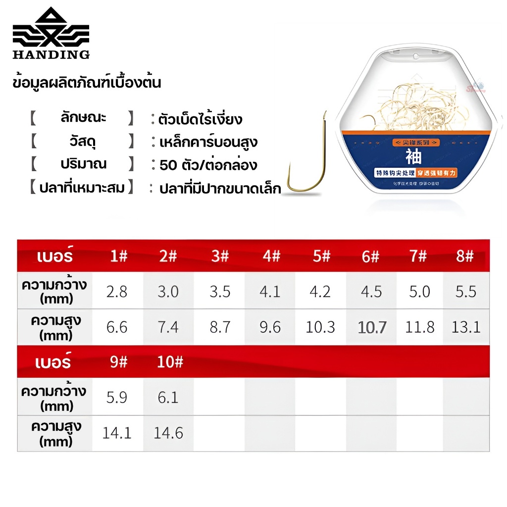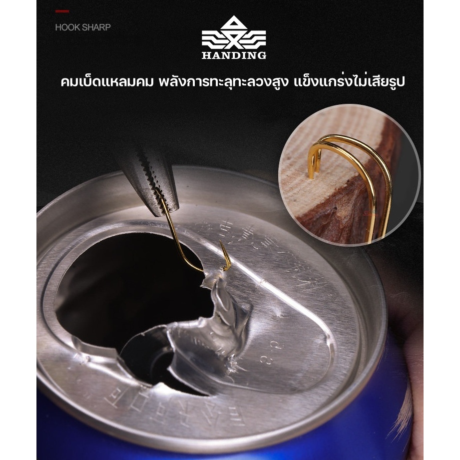 ตัวเบ็ดไร้เงี่ยง Handing Sharp GOLD (สำหรับสายเข้าปาก) 1 กล่องมี 50 ตัว
