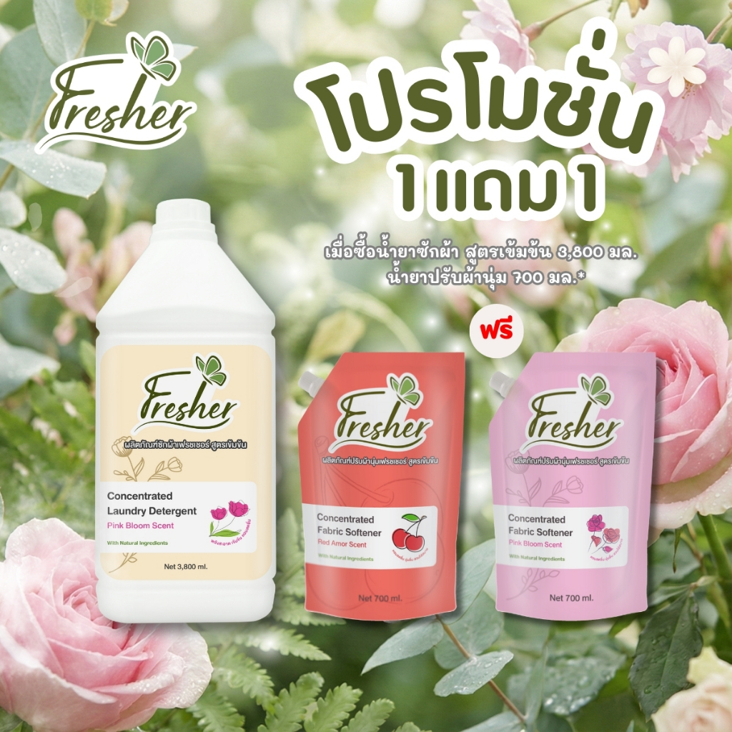 ซื้อ 1 แถม 1 !! น้ำยาซักผ้าเฟรชเชอร์ สูตรเข้มข้น กลิ่น Pink Bloom บรรจุ 3800 ml.** 1 คำสั่งซื้อต่อของแถม 1ครั้งเท่านั้น