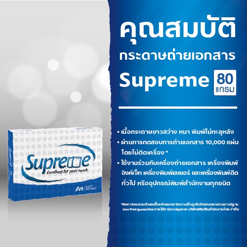 [ส่งฟรี!] Supreme กระดาษถ่ายเอกสาร 80 แกรม A4 บรรจุ 5 รีม