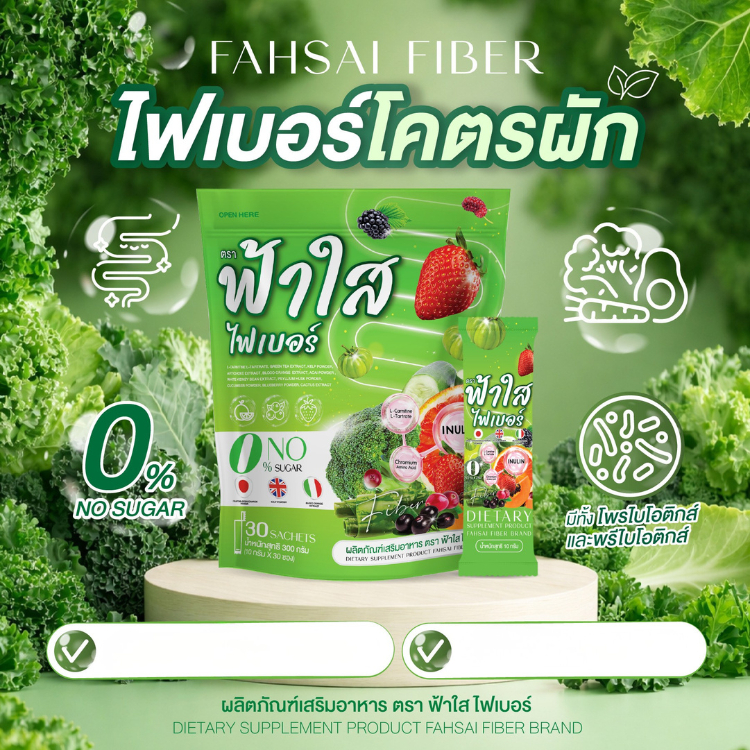 พร้อมส่ง✅ ฟ้าใส ไฟเบอร์ Fahsai Fiber โพรไบโอติกส์ ไฟเบอร์ผัก 1 ห่อ 30 ซอง